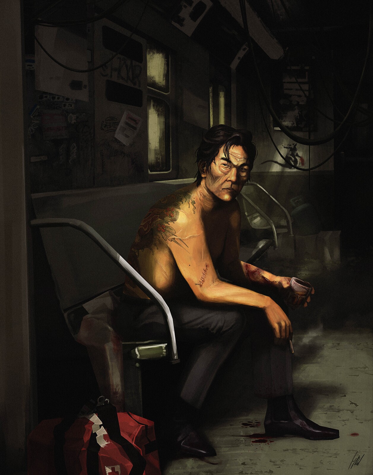 After a run in with some guard dogs and god knows what else, the gang leader of the renown gang "The Rats" stumbles back into the subway caverns to get patched up.