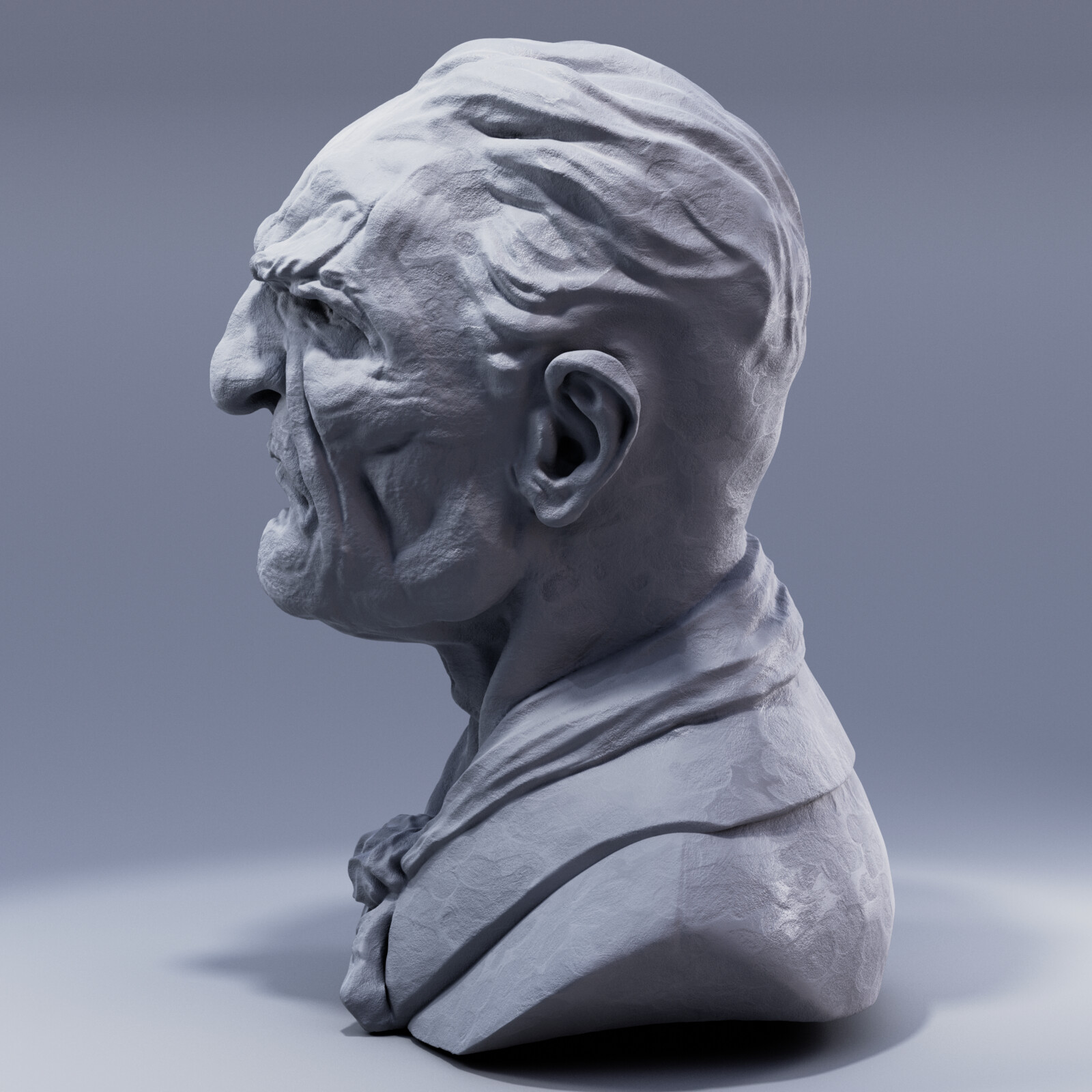 I always really enjoyed sculpting weathered characters with faces full of stories and panache so what better than a suave, judgmental and wise type aristocrat. I decided to add a little more oomph to the texture, digging into a more classical clay look.