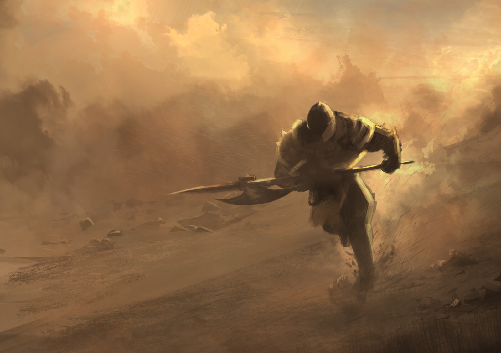 My submission for the Conquerors Blade Death Match Loading screen contest. I really wanted to have the lighting and silhouettes speak for them selves in this piece, shrouding most detail in the barrage of sand and allowing the movement to dictate the story.
